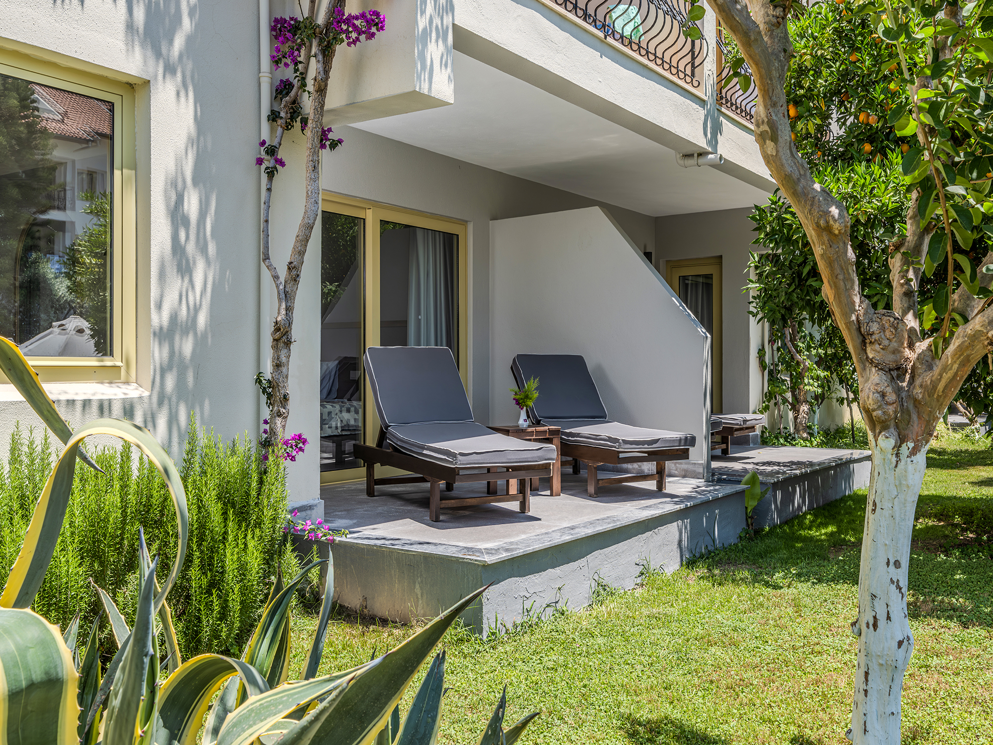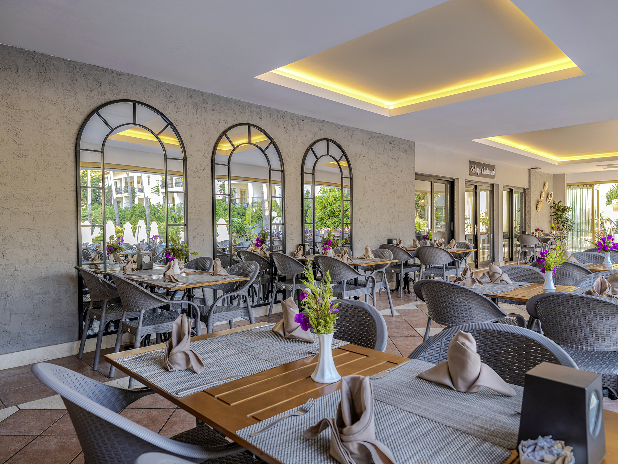 Kentia Suites, which has been serving as a 4-star hotel since 1999, is located 2 km from the ancient city of Side and 1 km from the beach. We aim to make you feel the peace of your home while offering a comfortable holiday with its botanical garden, pool, restaurant-bar, spa, hairdresser, mini club and entertainment activities.